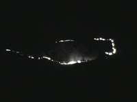 Pusuk Buhit “bersinar” celoteh anak saya si bungsu yang gembrot, ketika melintas di jalan raya di kawasan Simarmata menuju pulang ke Pangururan, seusai nonton turnamen Sepakbola Muspika Cup IV yang diikuti oleh 21 club dari 10 Desa di Kecamatan Simanindo. Turnamen yang digelar di lapangan bola Ambarita, berlangsung cukup aman, baik dan lancar, jumlah penontonnya juga wah..termasuk turis mancanegara pencinta bola sepak. Saya berfikir sejenak dengan celoteh itu, dan menghentikan mobil yang saya setir sendiri, lalu minta anak ketiga yang mahasiswa untuk mengambil camera… diarahkan ke pusuk buhit yang sedang “bersinar” terang di hari minggu 3 agustus 2008, pukul 20.00 wib…….. ya terang oleh api yang menjalar berkeliling di pinggang bukit/gunung yang konon milik kebanggaan orang Batak Kabupaten Samosir. Jika diperkirakan luas lahan yang telah terbakar api lebih dari 50 ha. Api masih marak oleh hembusan angin yang bertiup dari arah Timur (danau) dan menjalar tanpa hambatan ke arah luar. Ditengah hari yang sudah gelap, sinar api yang melalap hutan, rumput dan tanaman, membentuk lingkaran yang indah……(lihat foto), pantas saja disebut bersinar. Tidak ada kelihatan upaya dari Pemda/Dinas yang terkait, mungkin saja mereka tidak tahu karena bukit yang terbakar tidak kelihatan, walaupun Pangururan/Samosir mendapat giliran pemadaman aliran listrik PLN yang sudah berminggu-minggu berlangsung.